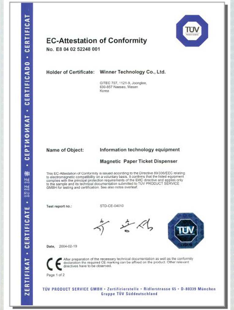CE Attestation of Conformity