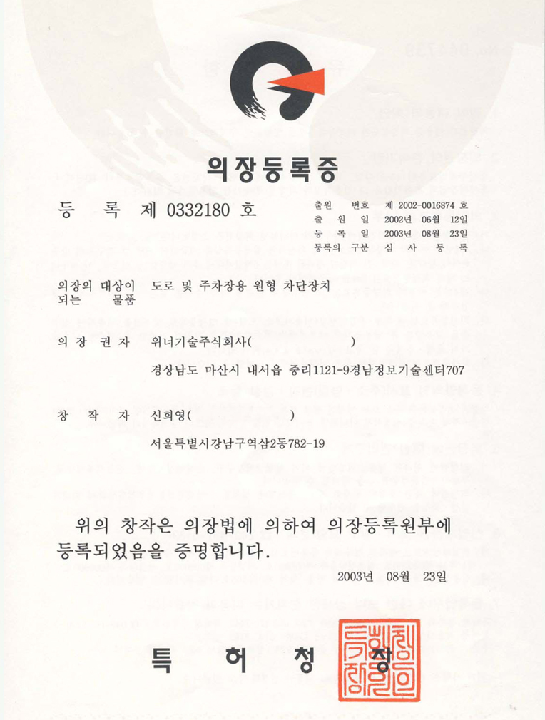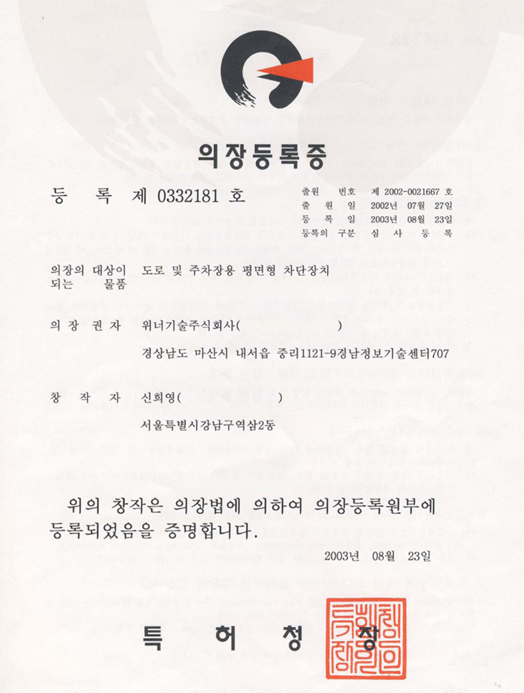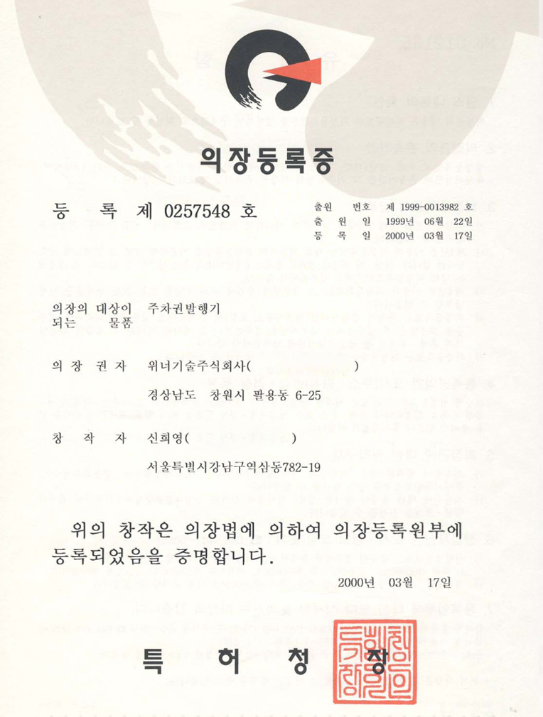 주차권발행기(의장등록증)