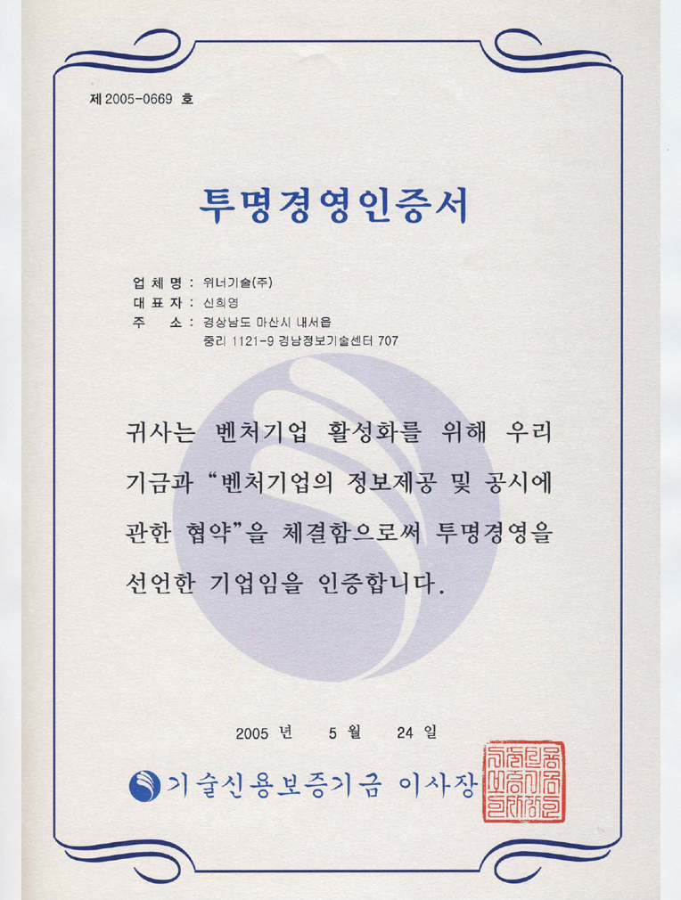 투명경영인증서(기술신용보증...