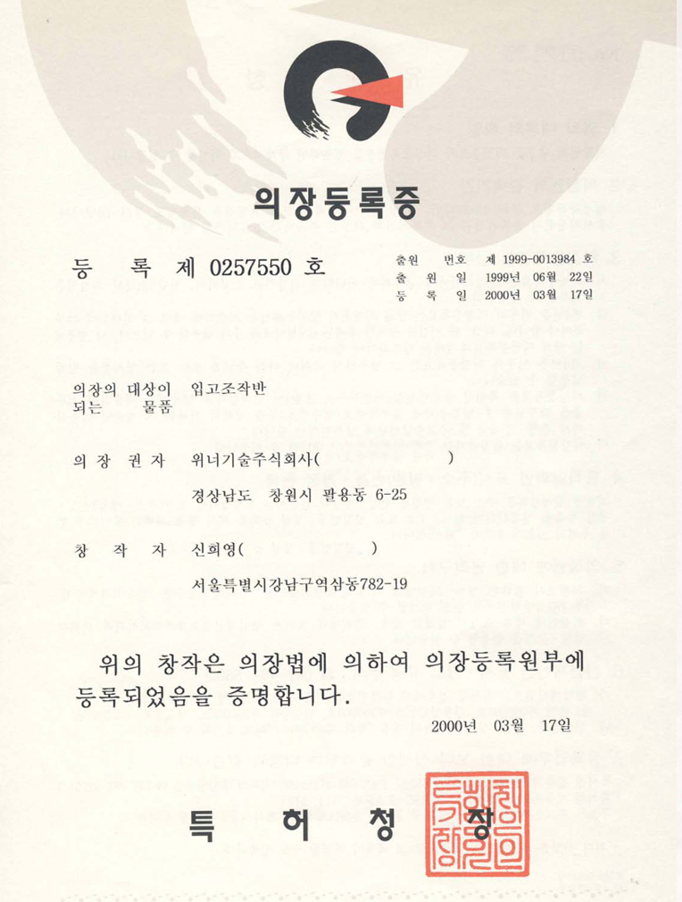 입고조작반(의장등록증)