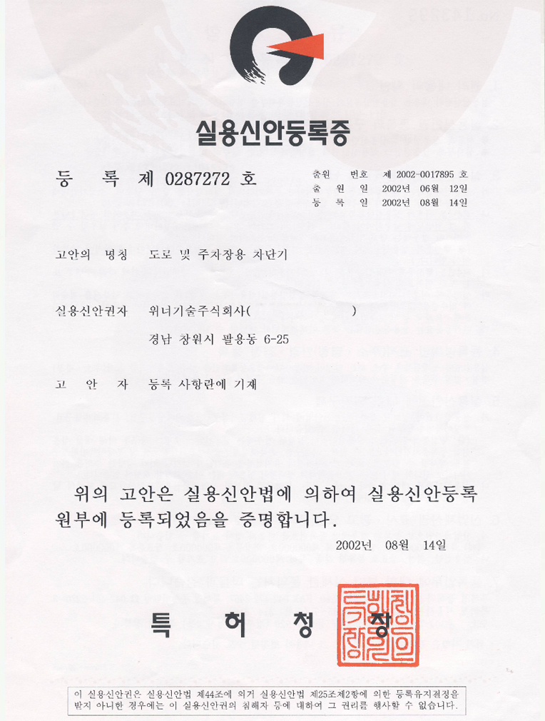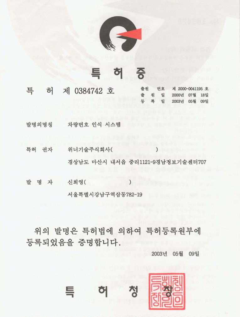 차량번호인식시스템(특허증)