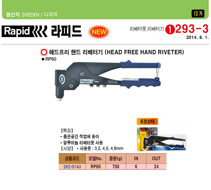 [Rapid] 헤드프리 핸드 리베터기(RP60,3.2/4.0/4.8mm)(Head Free Hand Riveter)